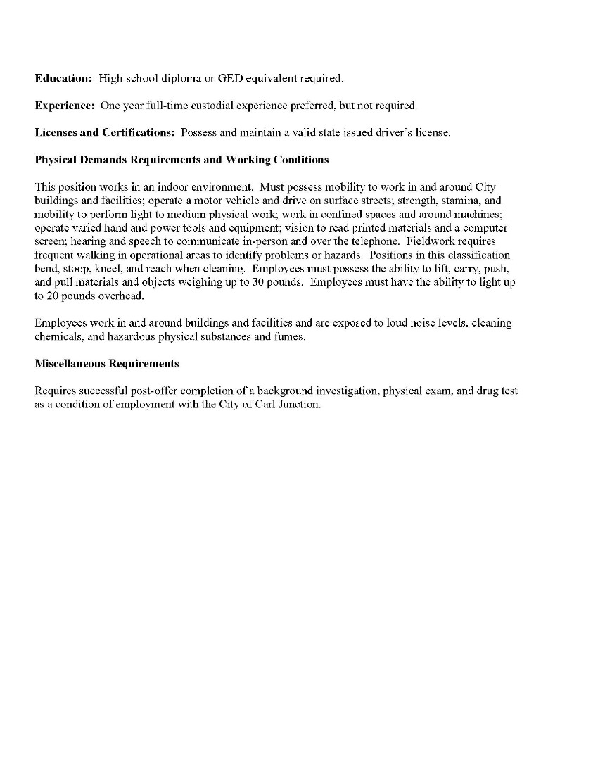 The City of Carl Junction is hiring for a part time custodian. The position pays $16.50 per hour and requires under 30 hours per week. Applications are available at City Hall at 303 N. Main, or online here.